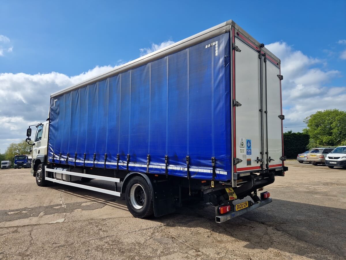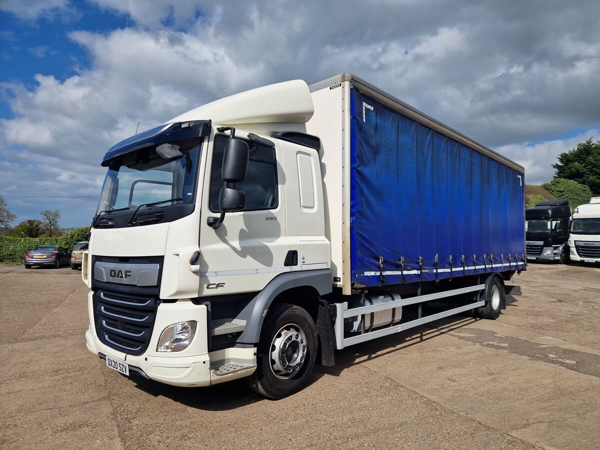 2020, Daf CF 260, 4×2, 28ft Curtainside Body, Sleeper Cab, Automatic Gearbox, Underslung Tail Lift, Rear Air Suspension, Air Conditioning, Night Heater, Phone Kit, Lane Departure System, Cruise Control, Cameras, Electric Windows and Mirrors, Heated Mirrors.