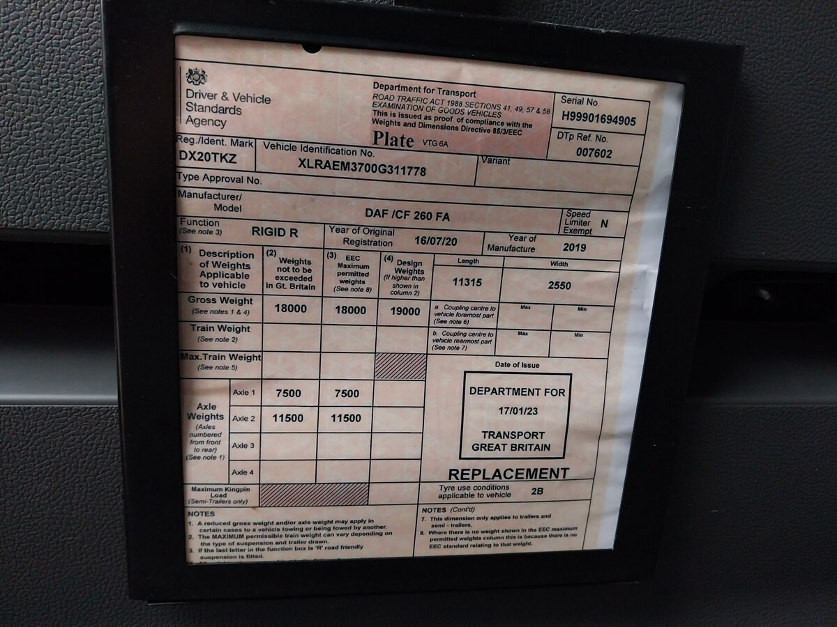 2020, Daf CF 260, 4×2, 29ft Curtainsider Body, 18 Tonner, Automatic Gearbox, Sleeper Cab, Rear Barn Doors, Underslung Tail lift, Rear Air Suspension, Air Conditioning, Lane Departure System, Adaptive Cruise Control, On Board Weigher, Night Heater, Electric Windows and Mirrors, Heated Mirrors, Good Tyres all round.