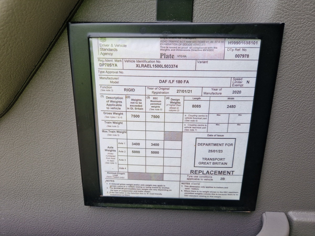 2021, Daf LF 180, 4×2, 20ft 7 inch Curtainsider Body, 7.5 Tonner, Manual Gearbox, Day Cab, Underslung Tail Lift, Rear Barn Doors, Lane Departure System, Adaptive Cruise Control, Electric Windows and Mirrors, Heated Mirrors, On Board Weigher, Twin Passenger Seats, Good Tyres all round.