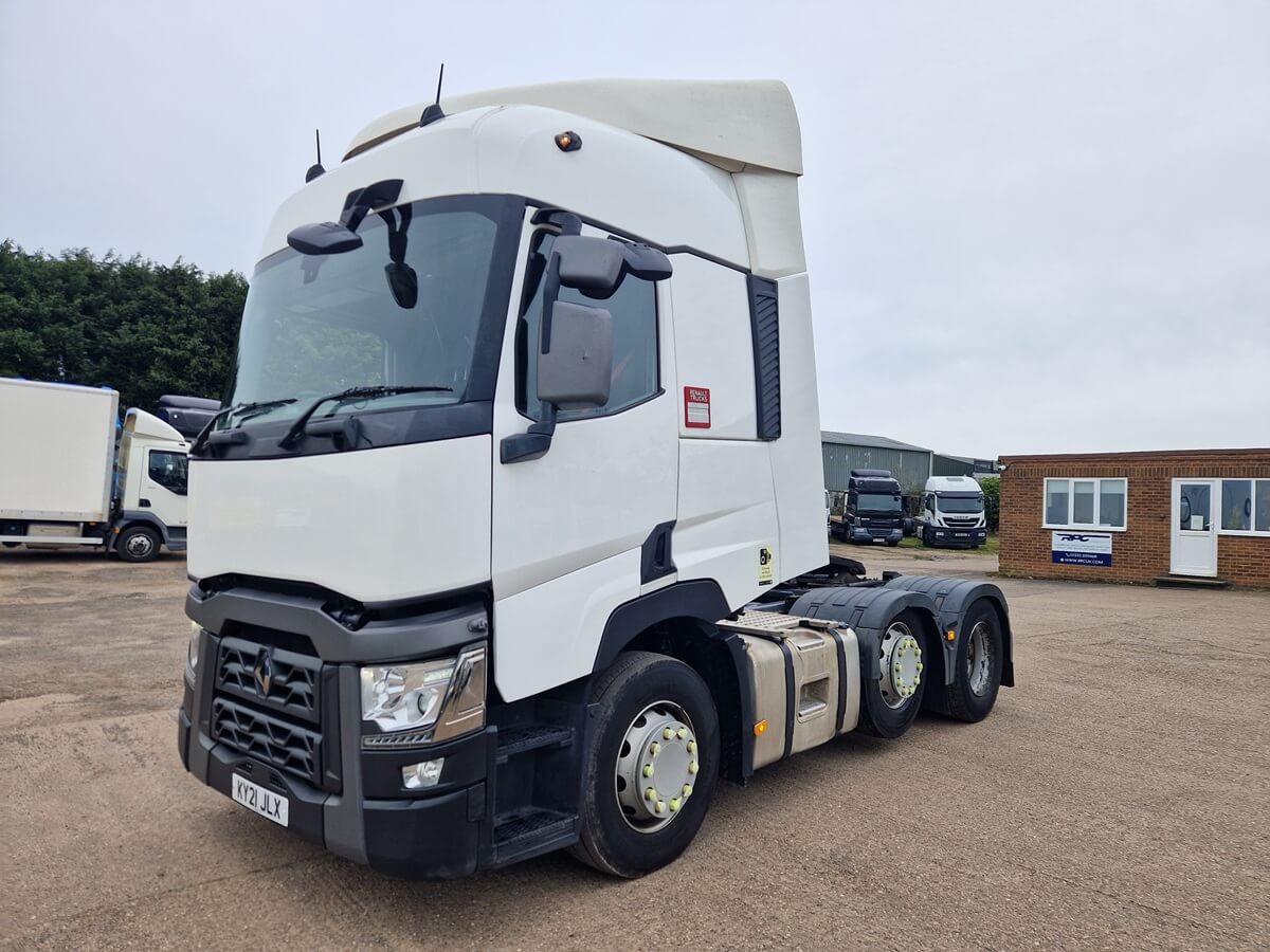 2021, Renault T480, 6×2, Tractor Unit, 44 Tonner, Automatic Gearbox, High Roof Sleeper Cab, Fridge, AC, Lane Departure System, Cruise Control, Electric Windows and Mirrors, Heated Mirrors, Phone Kit, Night Heater, Diff Lock, Heated Seats, Good Tyres all round.